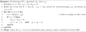 The Network Origin–Destination Estimation (NODE) method allocates workers from origins to jobs at destinations by sweeping feasible origin–destination pairs in non-decreasing (weakly increasing) shortest-path cost assigning until either the origin’s residual production or the destination’s residual capacity is exhausted.