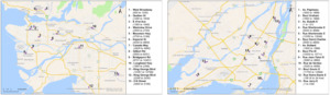 We conducted a case study in two Canadian cities: Vancouver and Montreal; using 2020 DMTI Enhanced Points of Interest dataset (Supplemental Table 1) and obtained Yelp data (Supplemental Table 2) and OSM data (Supplemental Table 3) in Summer 2021. The DMTI Enhanced Points of Interest is a proprietary dataset commonly used for research, though its validity varies substantially, and food outlets in DMTI were modestly correlated with food outlets from Canadian tax records (Stevenson et al. 2022). Both OSM and Yelp are community science datasets. OSM uses crowdsourced data to populate maps that are free to use, which has attracted attention from research communities (“OpenStreetMap Research” 2022). Yelp is a public company that publishes crowd-sourced business reviews. Yelp data can be used for research purposes, but data access is restricted.